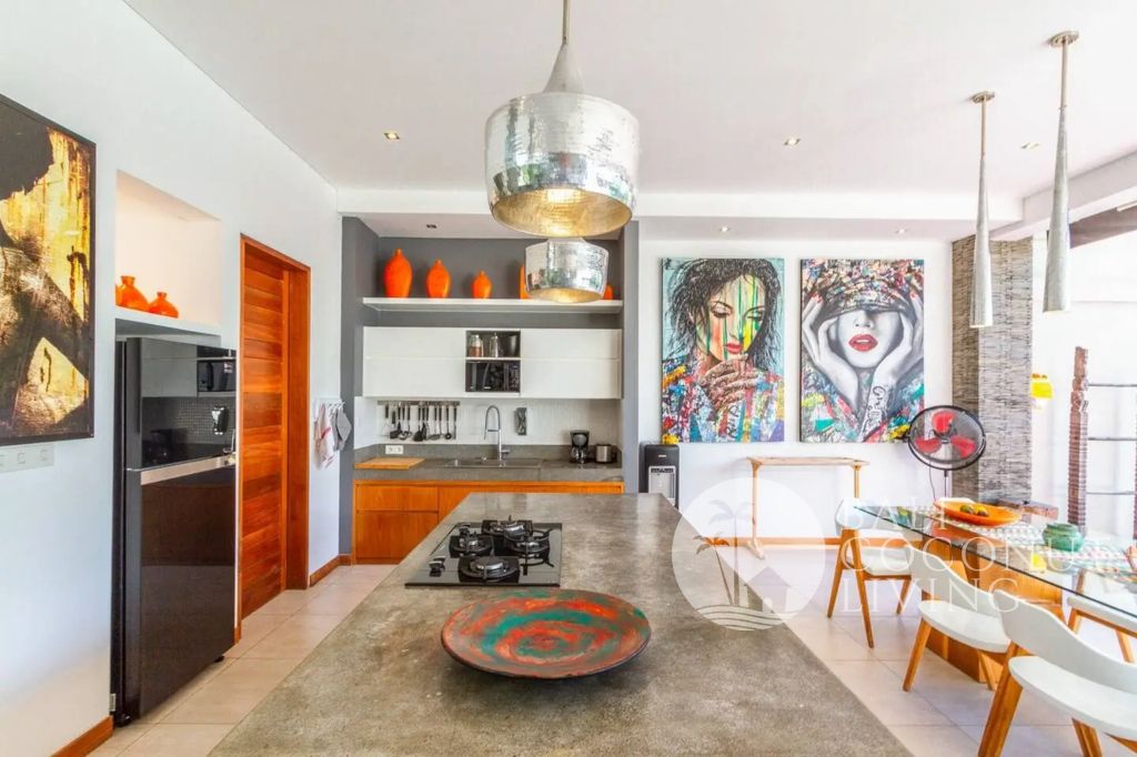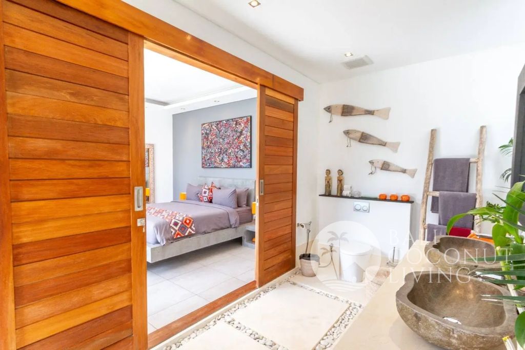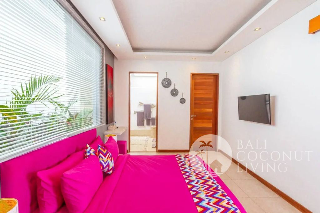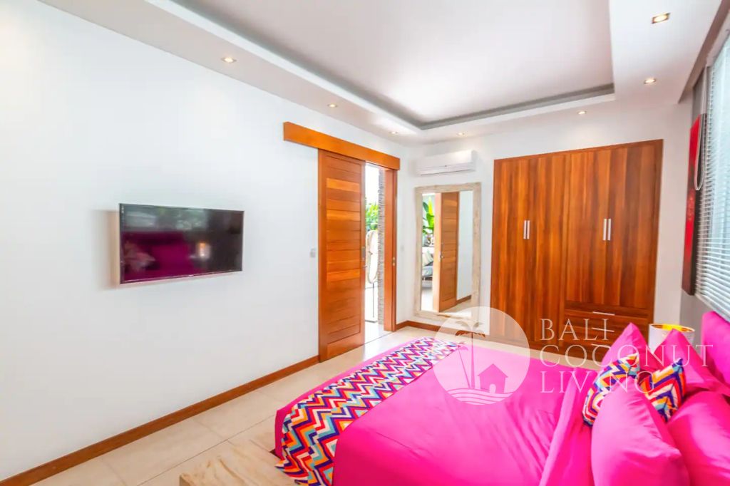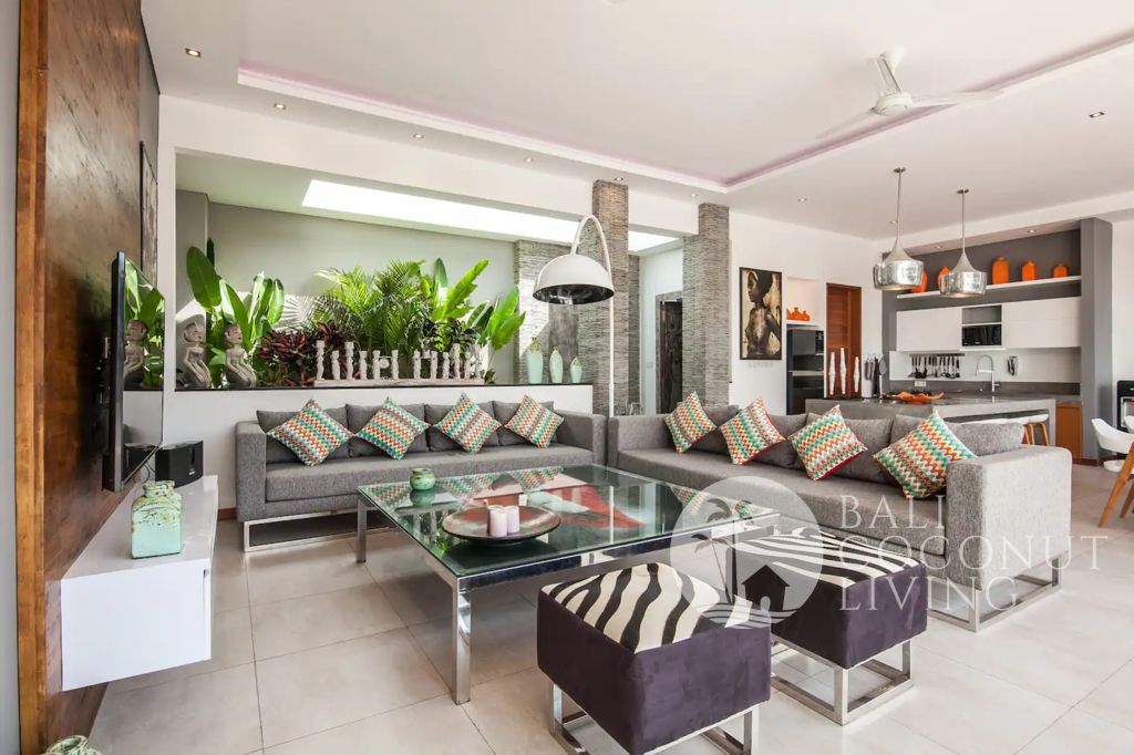 This stylish 3 bedroom, 3 bathroom villa in the heart of Berawa offers a perfect balance of comfort, functionality, and modern tropical living. Built on 200 sqm of land, the property features a well-designed layout with an enclosed living area, creating a cool and private indoor space ideal for both relaxation and everyday living. Large glass doors and windows allow natural light to flow in while