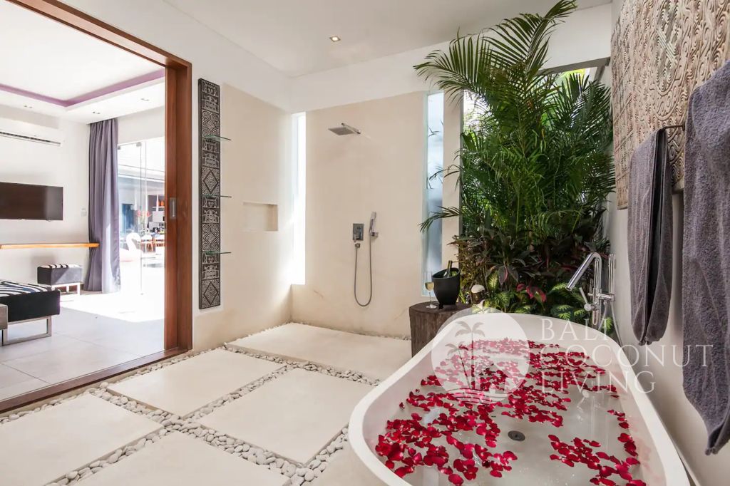 Other features of the property include a fully equipped kitchen, a private swimming pool, a well-manicured garden, and a parking space. Overall, this luxurious 3 bedroom 3 bathroom villa in Seminyak is the epitome of stylish living and offers the perfect blend of modern amenities and peaceful, serene surroundings. It would make a great home for a family or group of friends looking to experience the best of what this vibrant city has to offer. Villa Davidson is available for sale at USD 450,000 (leasehold until 2057) and also possible for a 20-year lease at USD 370,000, offering the perfect opportunity for those looking to invest in a piece of luxury real estate in the heart of Seminyak.