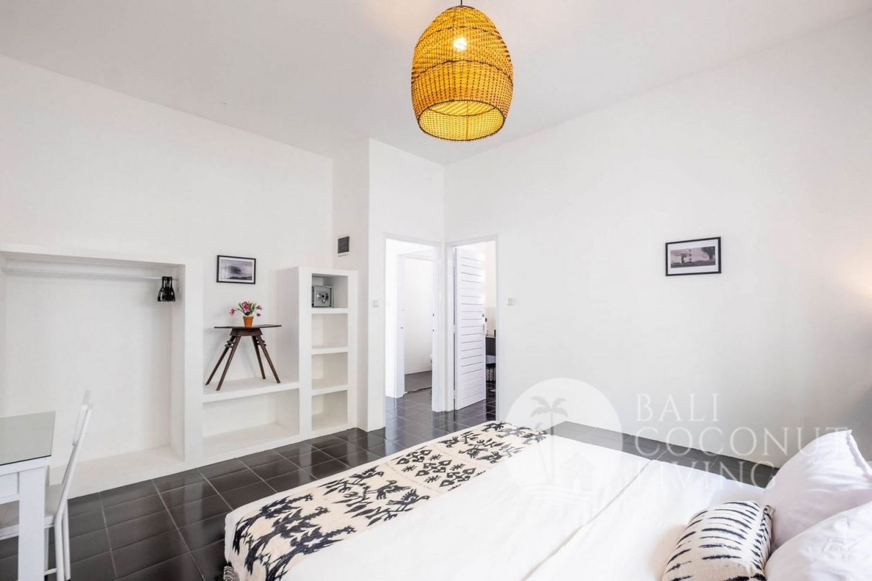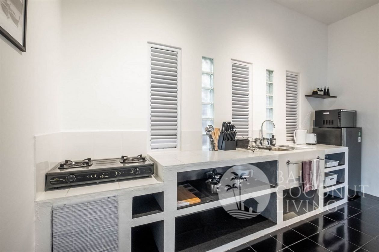 Villa Tukti 2 is a lovely unfurnished two-bedroom villa available for long-term lease in the desirable Canggu, Tumbak Bayuh area. Set on 200 sqm of land, this property offers two spacious bedrooms with en-suite bathrooms, an open-plan kitchen, enclosed living area, a storage room, a rooftop terrace, a private swimming pool, and secure parking space. The open-plan layout creates a seamless conne