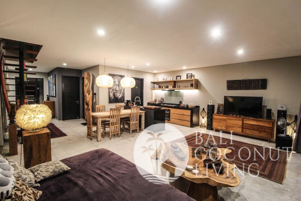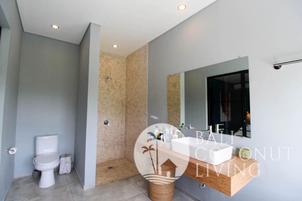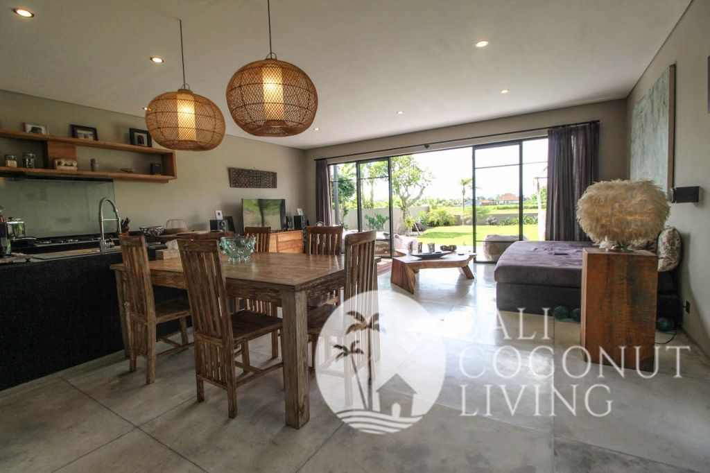 This elegant modern villa offers the perfect balance between tropical vibes and contemporary comfort. Designed with a closed living area, it ensures privacy and comfort while keeping the space bright and airy through wide glass doors overlooking the pool. Featuring 3 spacious bedrooms with ensuite bathrooms, a kitchen with warm wooden finishes, and a stylish living room that creates a cozy and