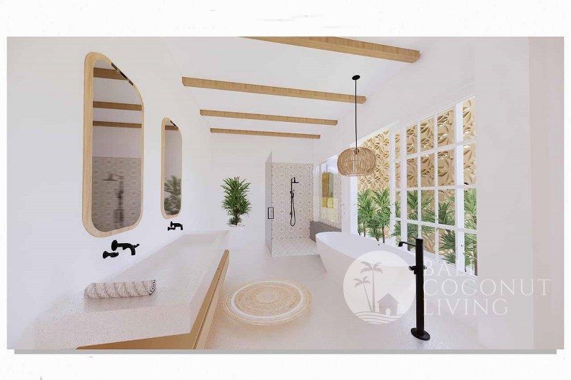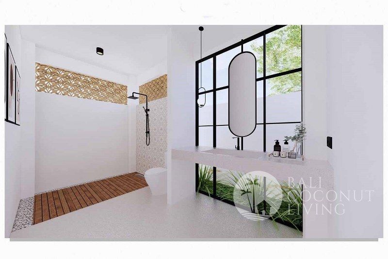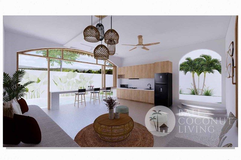 This modern 3-bedroom villa in Babakan offers a perfect blend of contemporary design and comfortable living, set on 250 sqm of land with a spacious 350 sqm building. Designed with a closed living concept, the interiors feature clean lines, soft neutral tones, and large glass windows that allow natural light to flow seamlessly throughout the space. The sunken lounge, sleek fully equipped kitchen, a