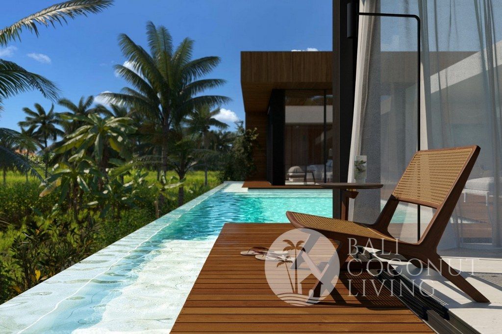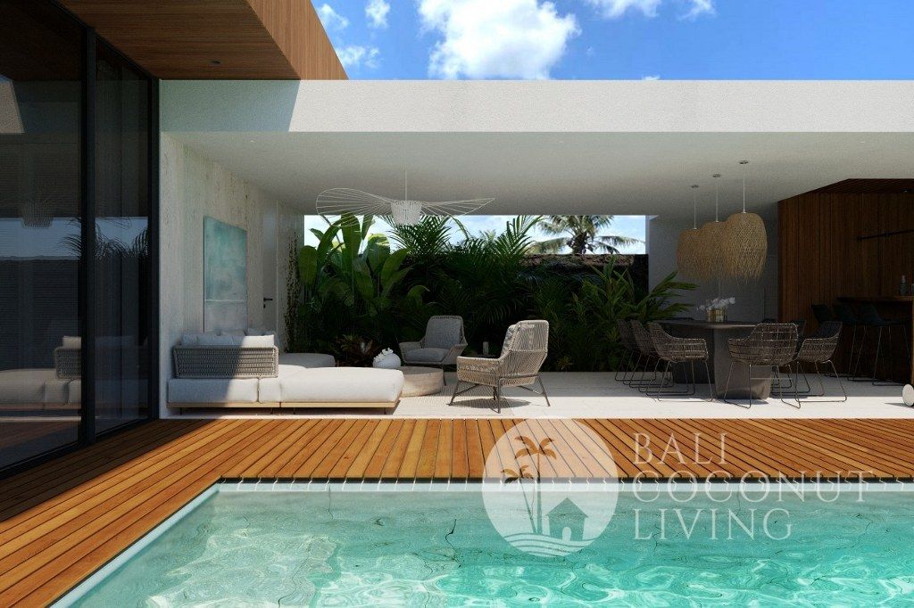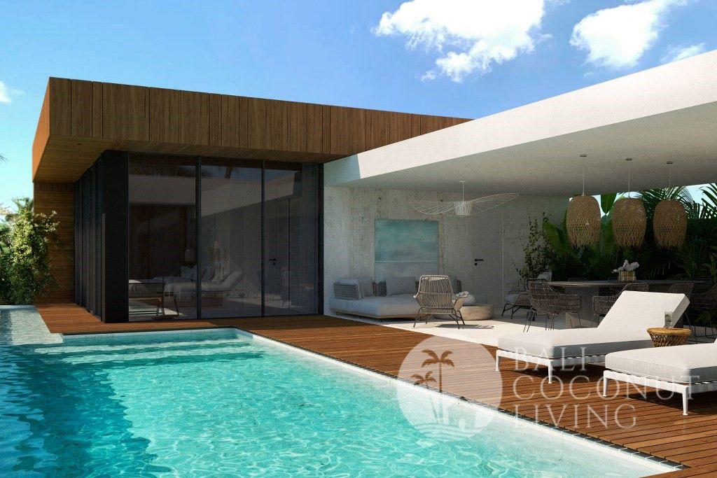 This cozy 2 bedroom villa in Berawa offers a perfect blend of modern design and comfortable living. Set on 100 sqm of land, the property features a clean architectural style with warm wooden accents and large windows that invite plenty of natural light, creating a bright and welcoming atmosphere throughout the home. Inside, you’ll find a cozy enclosed living area that seamlessly connects to t