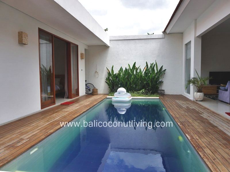 This stylish villa offers the perfect blend of comfort and modern living, located in the peaceful area of Tumbak Bayuh, just minutes away from the vibrant lifestyle of Canggu. Featuring 2 bedrooms with en-suite bathrooms, the villa is designed with a bright and airy layout, seamlessly connecting indoor and outdoor spaces. The enclosed living area opens directly to a private swimming pool with a