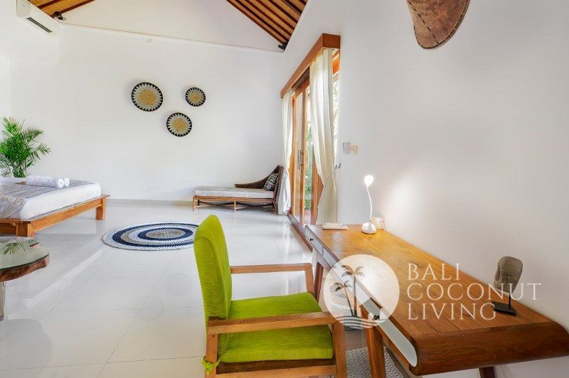 This stylish villa offers the perfect blend of comfort and modern living, located in the peaceful area of Tumbak Bayuh, just minutes away from the vibrant lifestyle of Canggu. Featuring 2 bedrooms with en-suite bathrooms, the villa is designed with a bright and airy layout, seamlessly connecting indoor and outdoor spaces. The enclosed living area opens directly to a private swimming pool with a