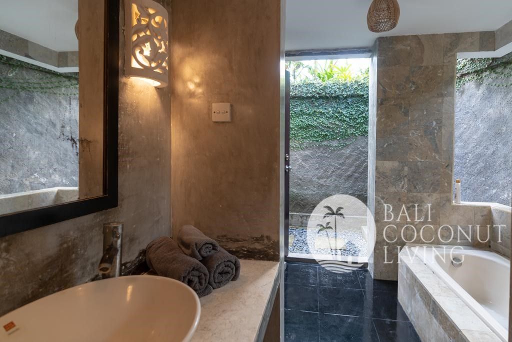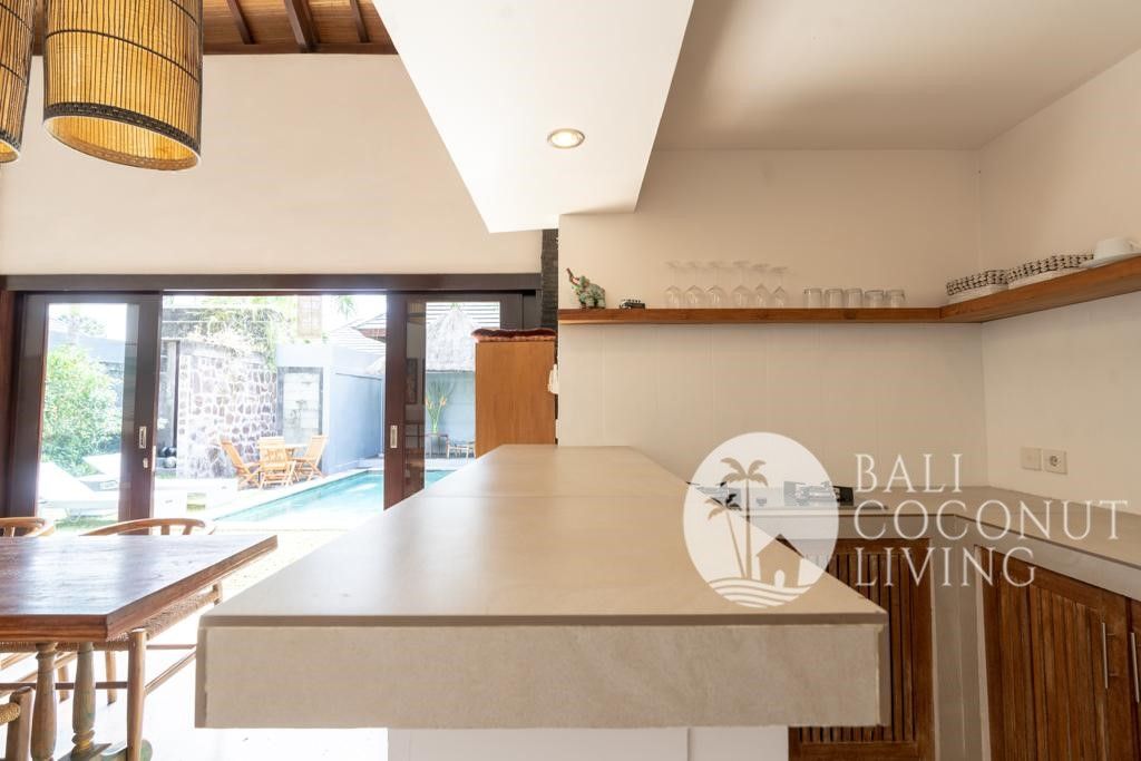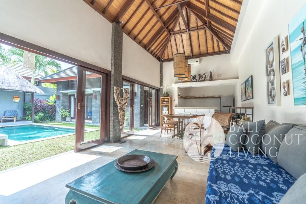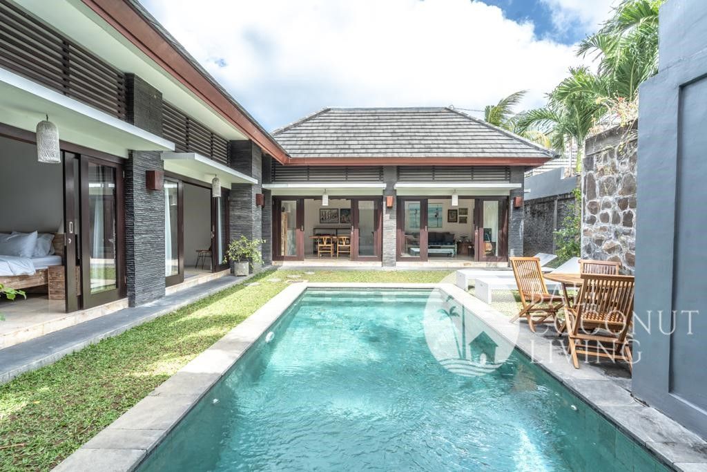 A beautiful 2 bedroom villa with semi furnished strategically situated in the prime location on Batu Bolong is now available. The villa sat on 280 sqm of the land size. This villa consists of 2 en-suite bedrooms, open plan kitchen with enclosed dining and living space, garden, pool and parking lot.