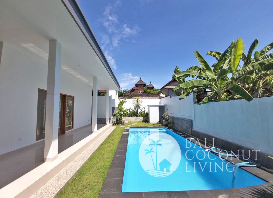 This stylish villa offers the perfect blend of comfort and modern living, located in the peaceful area of Tumbak Bayuh, just minutes away from the vibrant lifestyle of Canggu. Featuring 2 bedrooms with en-suite bathrooms, the villa is designed with a bright and airy layout, seamlessly connecting indoor and outdoor spaces. The enclosed living area opens directly to a private swimming pool with a