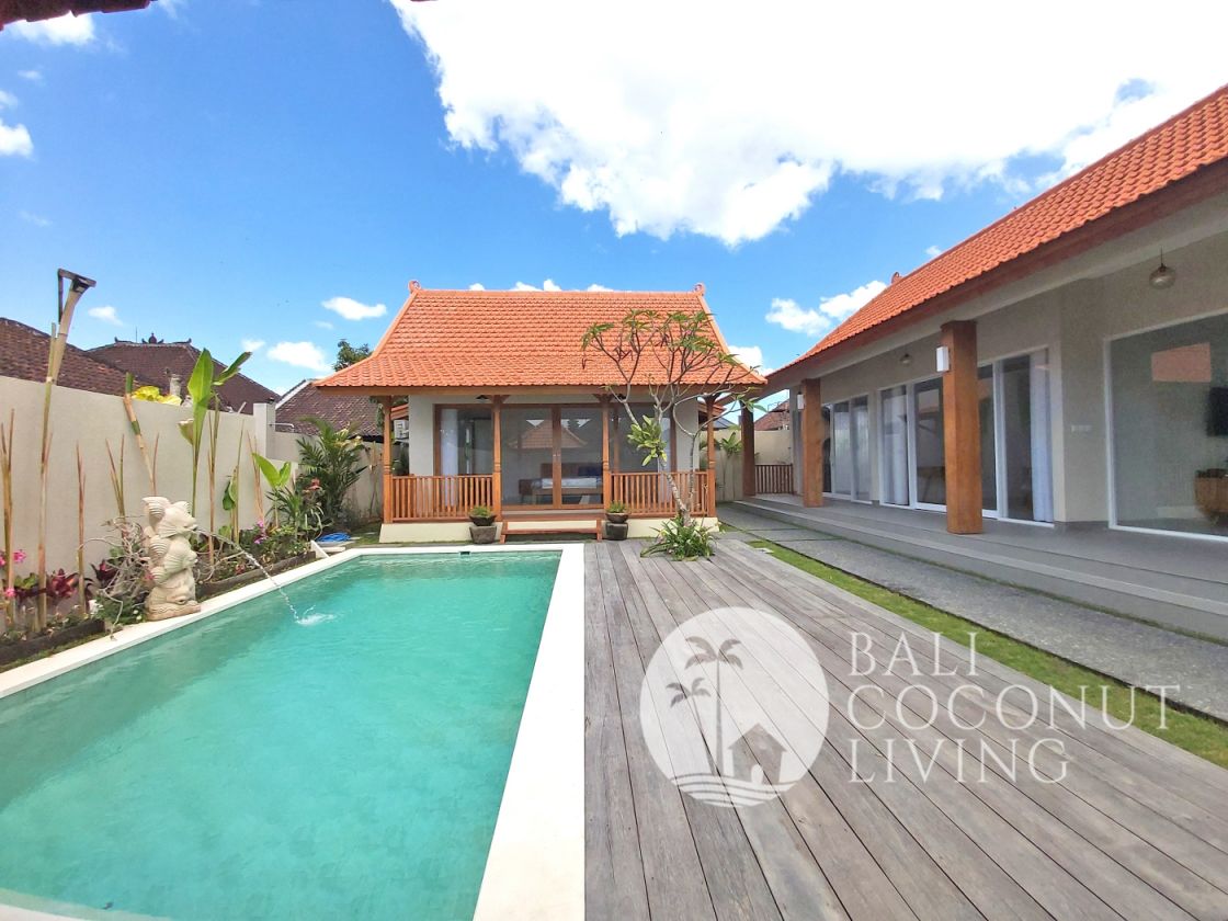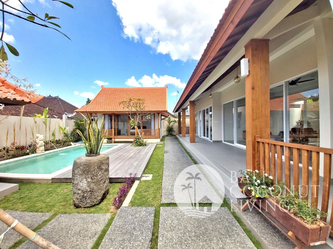 Comfortable 3 bedroom villa nestled in a quiet and peaceful rural Babakan is available for yearly rental. The property set on 325 sqm of land size. The villa consist of 3 en-suite bathrooms, terrace, equipped kitchen with open living, pool, garden and parking space.