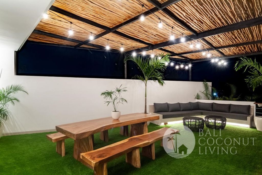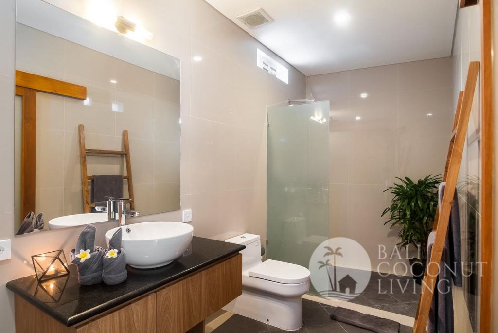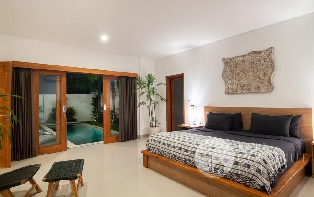 This elegant modern villa offers the perfect balance between tropical vibes and contemporary comfort. Designed with a closed living area, it ensures privacy and comfort while keeping the space bright and airy through wide glass doors overlooking the pool. Featuring 3 spacious bedrooms with ensuite bathrooms, a kitchen with warm wooden finishes, and a stylish living room that creates a cozy and