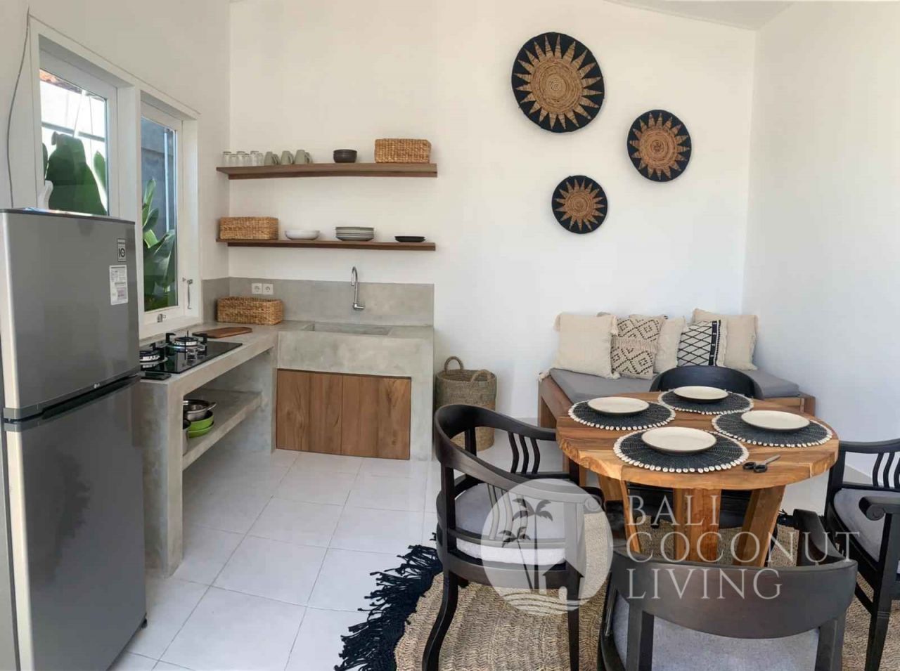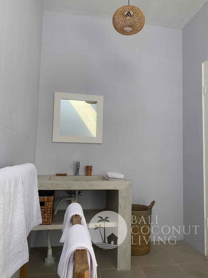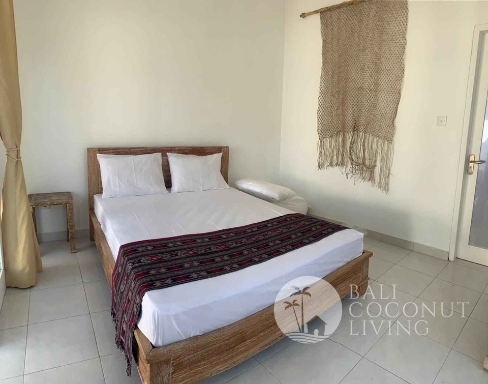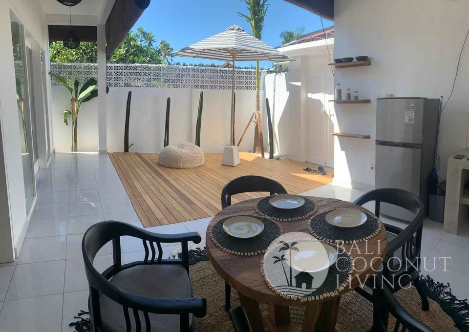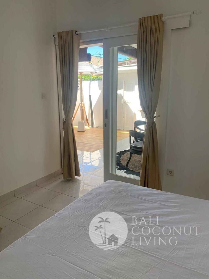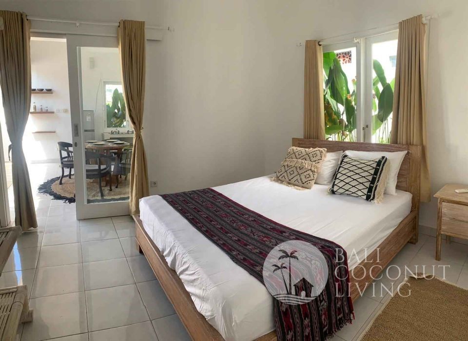 A cute 2 bedroom house nestled in a prime location of Batu Bolong area is available for yearly rental. The house consists of 2 bedrooms with en-suite bathrooms, equipped kitchenette, an open living space, and a parking spot.