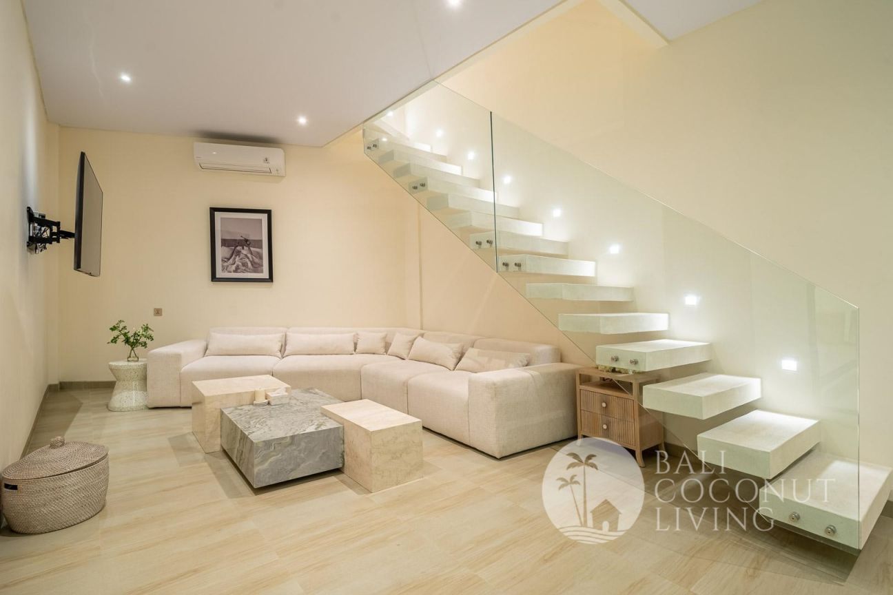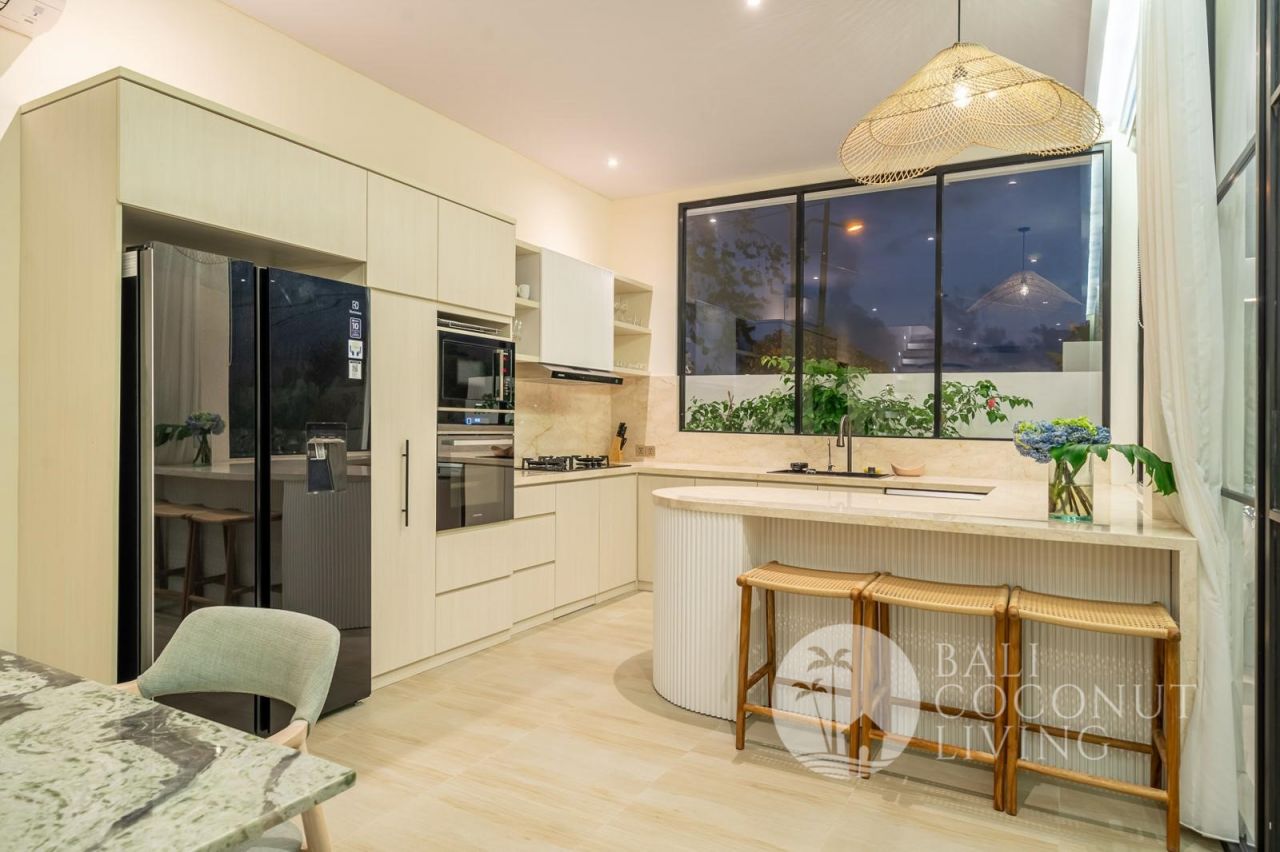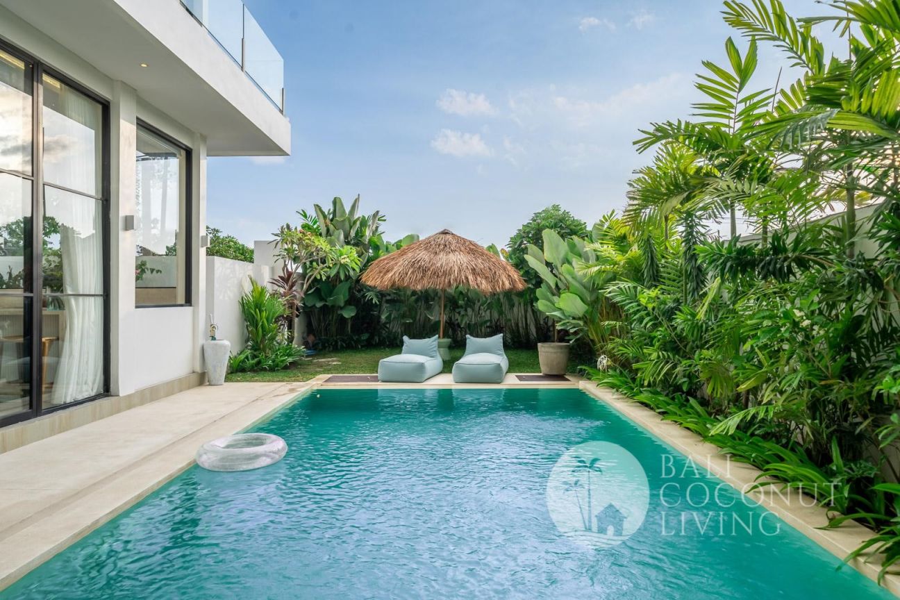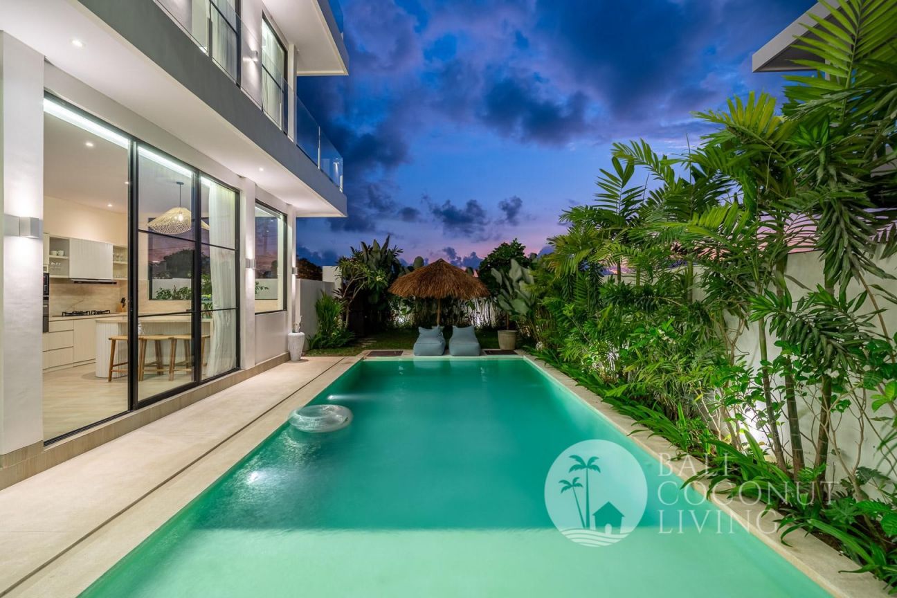 This modern 3-bedroom villa in Babakan offers a perfect blend of contemporary design and comfortable living, set on 250 sqm of land with a spacious 350 sqm building. Designed with a closed living concept, the interiors feature clean lines, soft neutral tones, and large glass windows that allow natural light to flow seamlessly throughout the space. The sunken lounge, sleek fully equipped kitchen, and elegant dining area create a warm yet sophisticated atmosphere, ideal for both relaxing and entertaining.