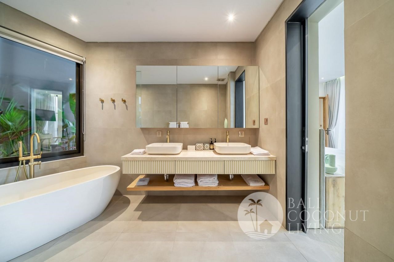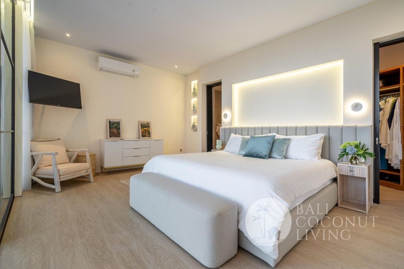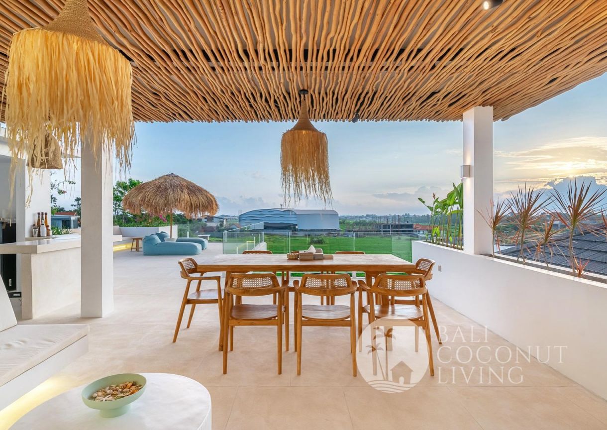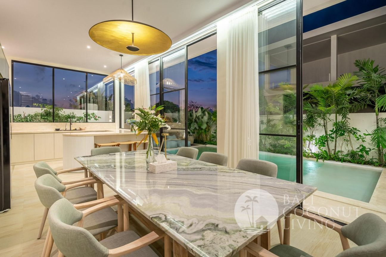 This modern 3-bedroom villa in Babakan offers a perfect blend of contemporary design and comfortable living, set on 250 sqm of land with a spacious 350 sqm building. Designed with a closed living concept, the interiors feature clean lines, soft neutral tones, and large glass windows that allow natural light to flow seamlessly throughout the space. The sunken lounge, sleek fully equipped kitchen, and elegant dining area create a warm yet sophisticated atmosphere, ideal for both relaxing and entertaining.