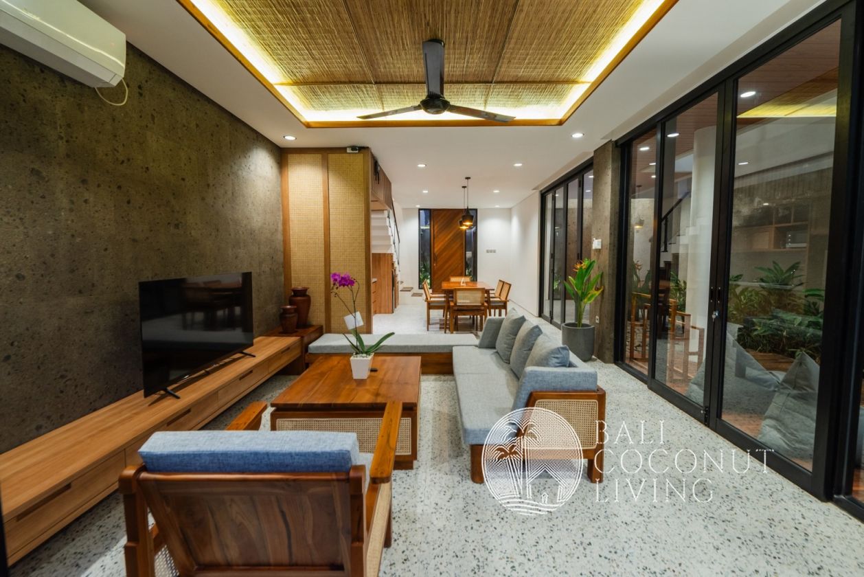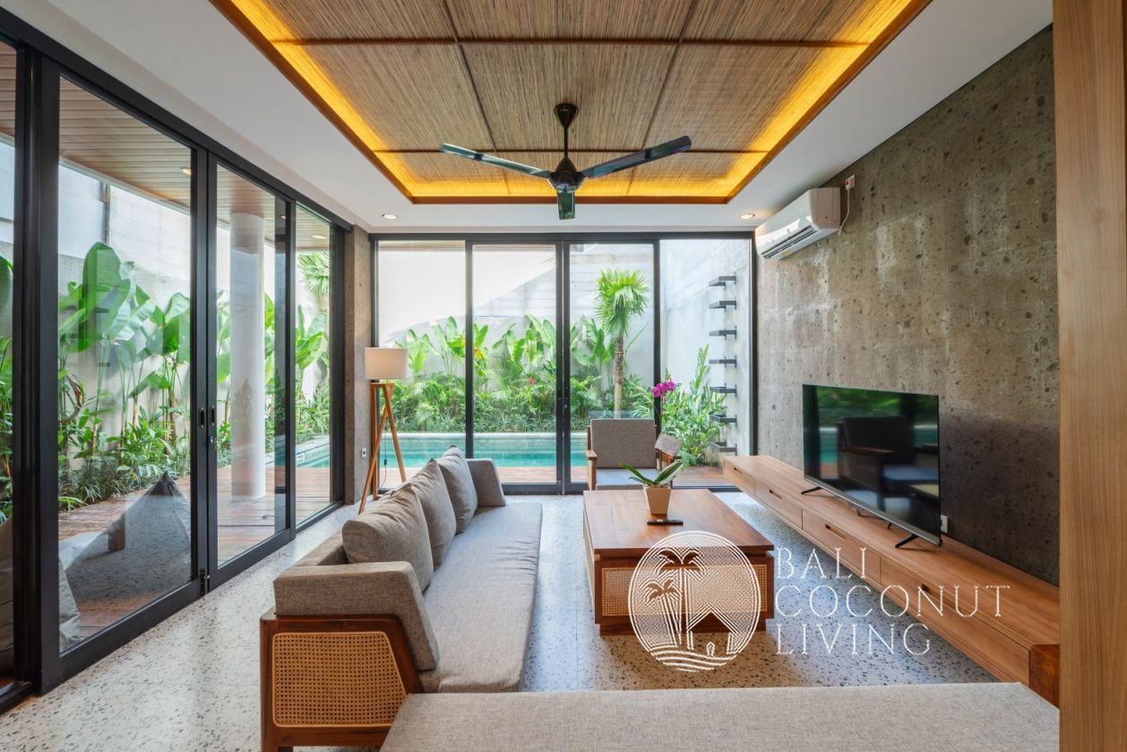 This stylish villa offers the perfect blend of comfort and modern living, located in the peaceful area of Tumbak Bayuh, just minutes away from the vibrant lifestyle of Canggu. Featuring 2 bedrooms with en-suite bathrooms, the villa is designed with a bright and airy layout, seamlessly connecting indoor and outdoor spaces. The enclosed living area opens directly to a private swimming pool with a