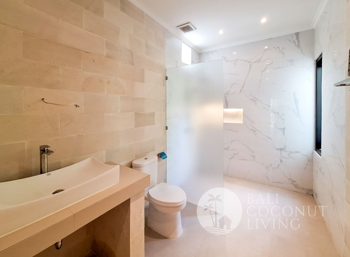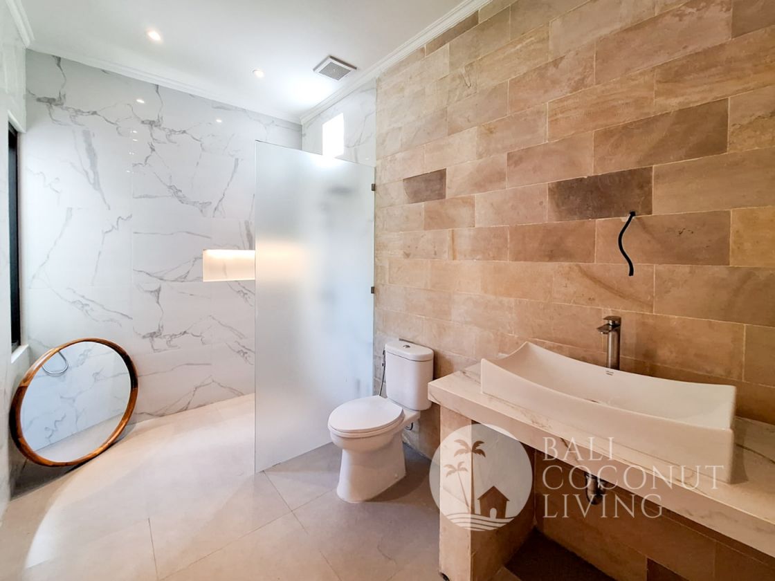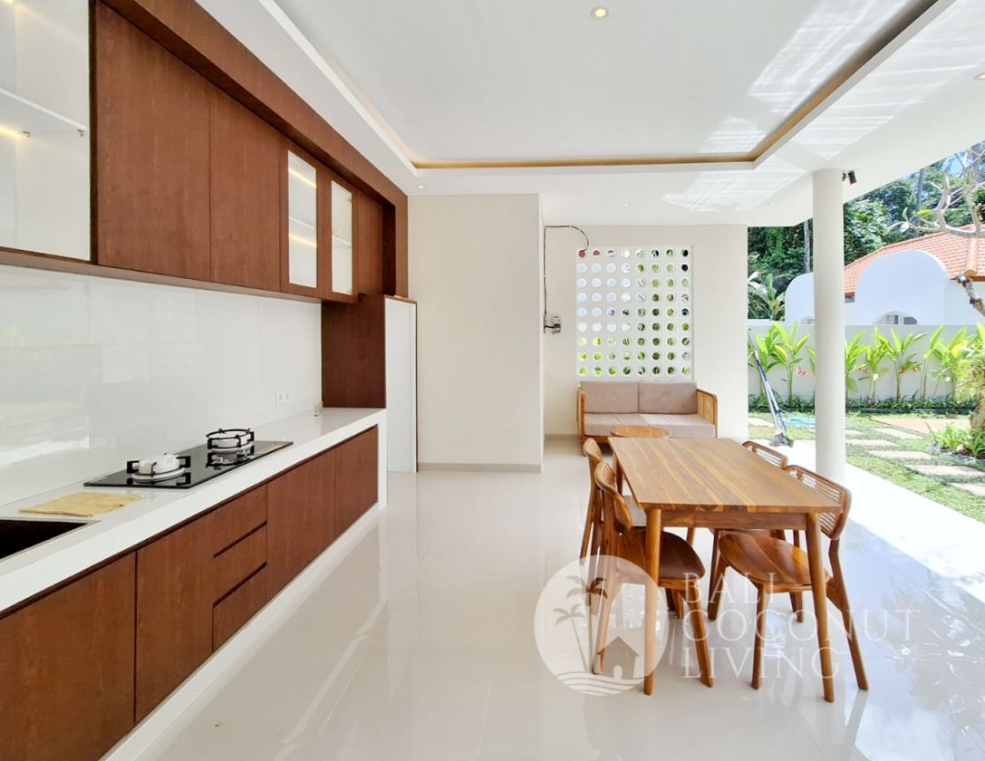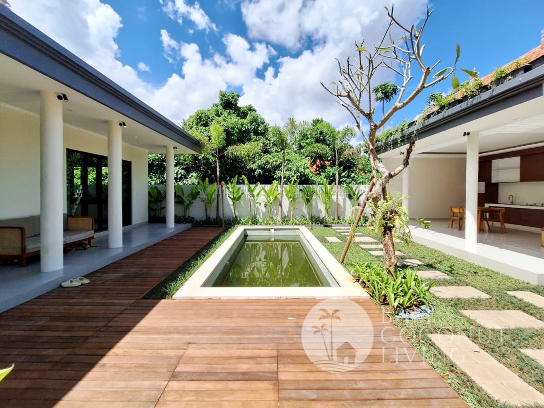 This stylish 3 bedroom, 3 bathroom villa in the heart of Berawa offers a perfect balance of comfort, functionality, and modern tropical living. Built on 200 sqm of land, the property features a well-designed layout with an enclosed living area, creating a cool and private indoor space ideal for both relaxation and everyday living. Large glass doors and windows allow natural light to flow in while