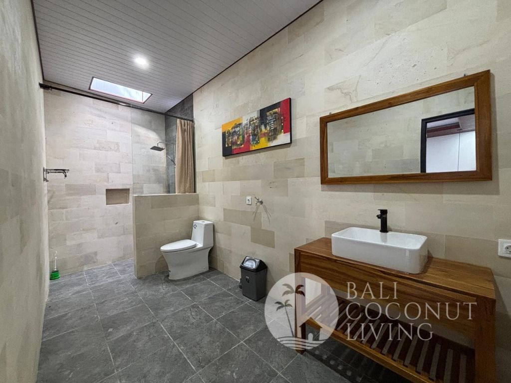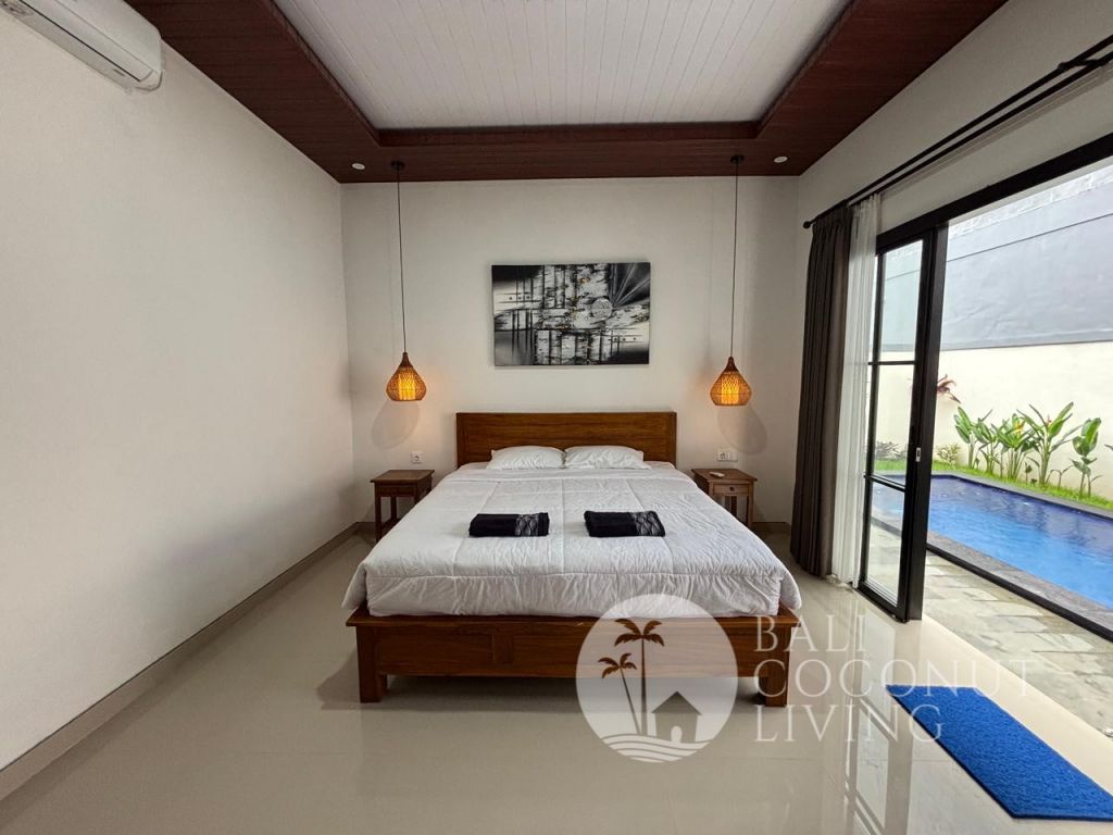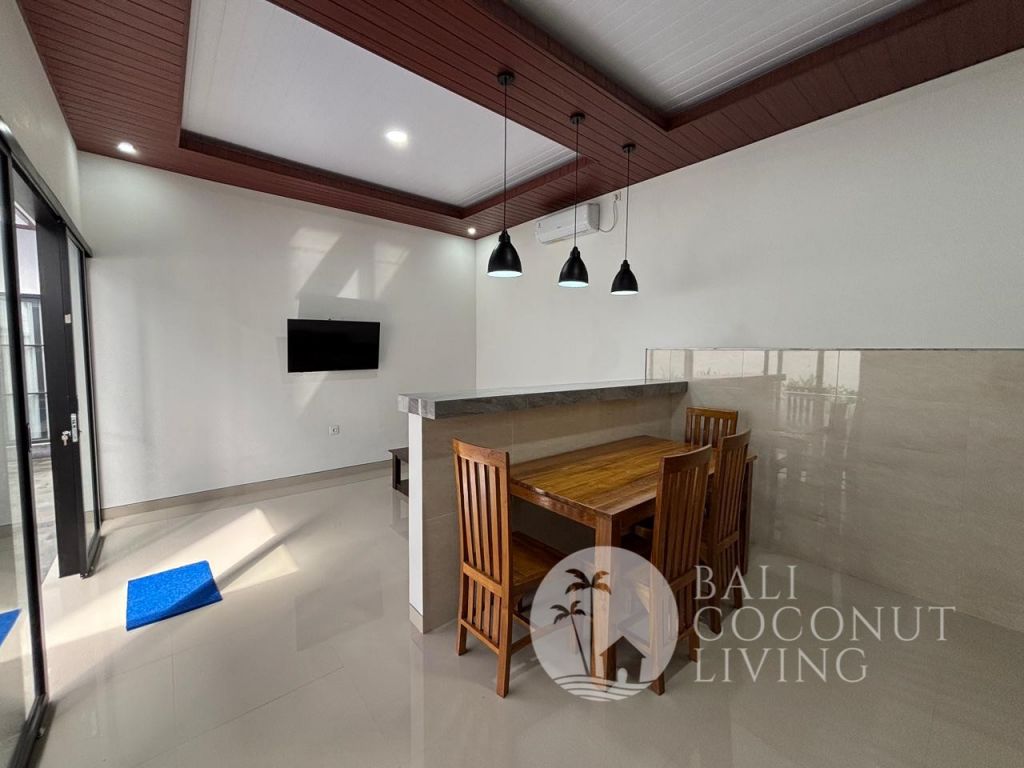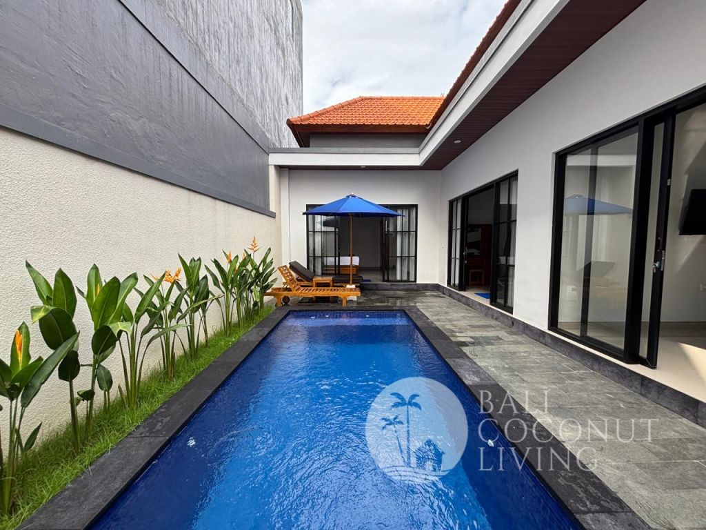 This cozy 2 bedroom villa in Berawa offers a perfect blend of modern design and comfortable living. Set on 100 sqm of land, the property features a clean architectural style with warm wooden accents and large windows that invite plenty of natural light, creating a bright and welcoming atmosphere throughout the home. Inside, you’ll find a cozy enclosed living area that seamlessly connects to t
