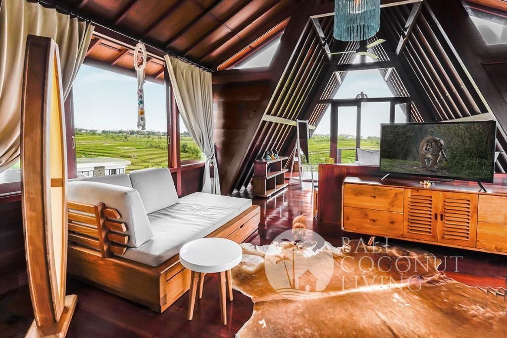 This charming tropical villa offers a peaceful escape surrounded by lush greenery and open space. The villa features a cozy enclosed living area, a spacious garden perfect for relaxing or outdoor dining, and a warm traditional Balinese touch in its design. Ideal for couples or small families looking for a serene home in Bali, yet still close to cafes, shops, and local attractions. Enjoy the fres