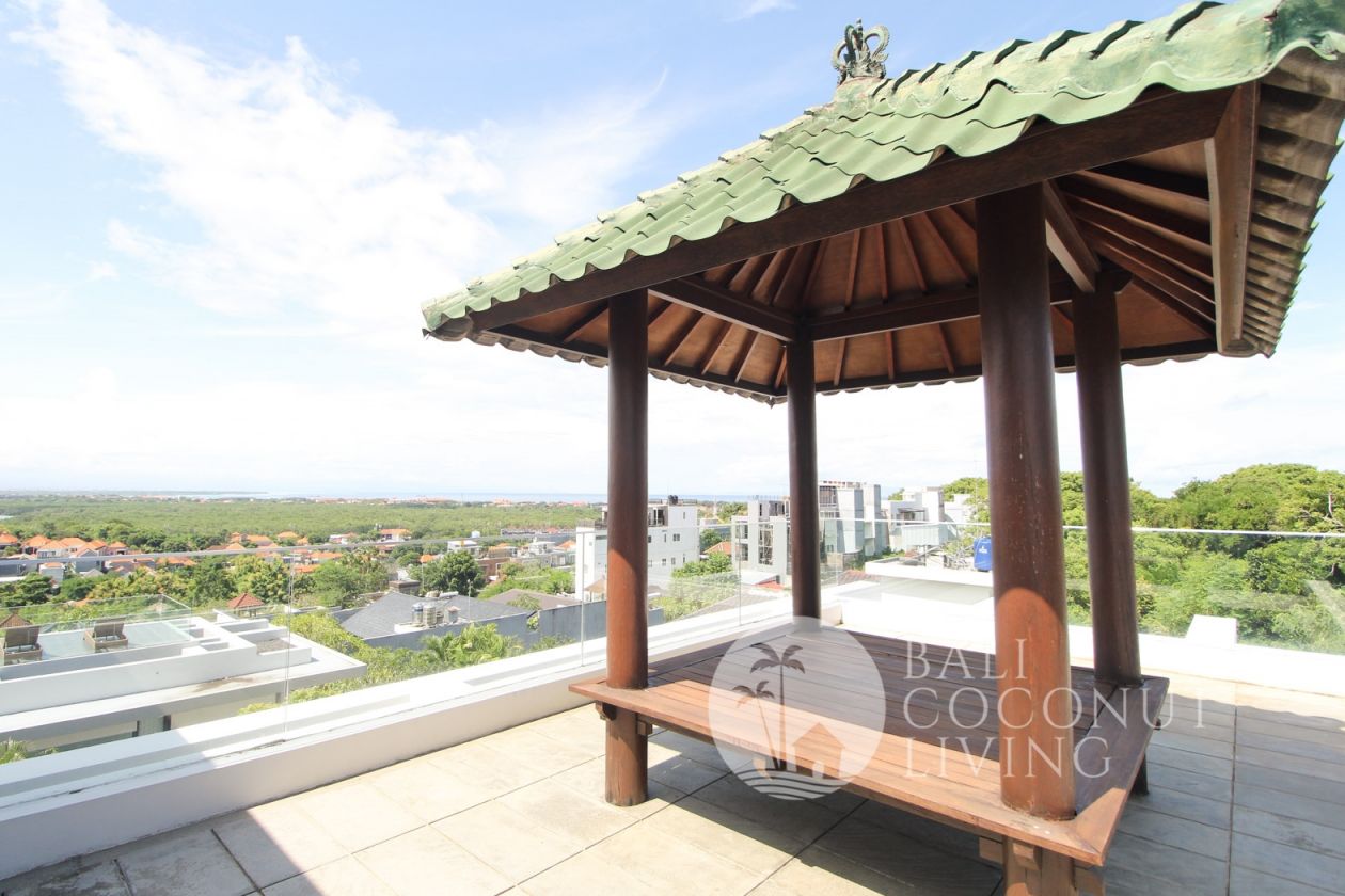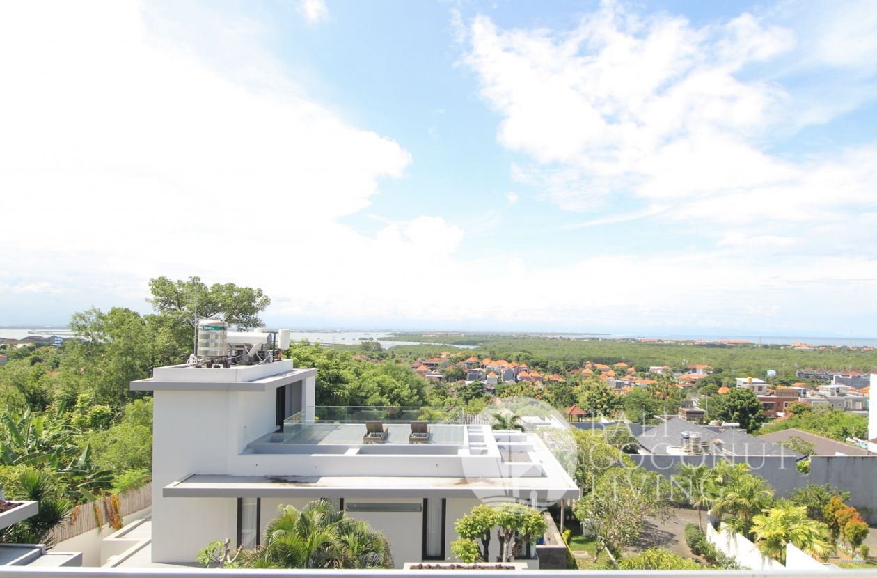 Welcome to Villa Evata , a modern four-bedroom retreat in the serene Bukit area of Ungasan. Perfectly located near Goa Gong, this beautifully two-storey home offers sweeping 360-degree views of the surrounding landscape and the iconic GWK statue. From the first-floor balcony, you can enjoy breathtaking sunsets while surrounded by peace and natural beauty. As you step through the elegant arched