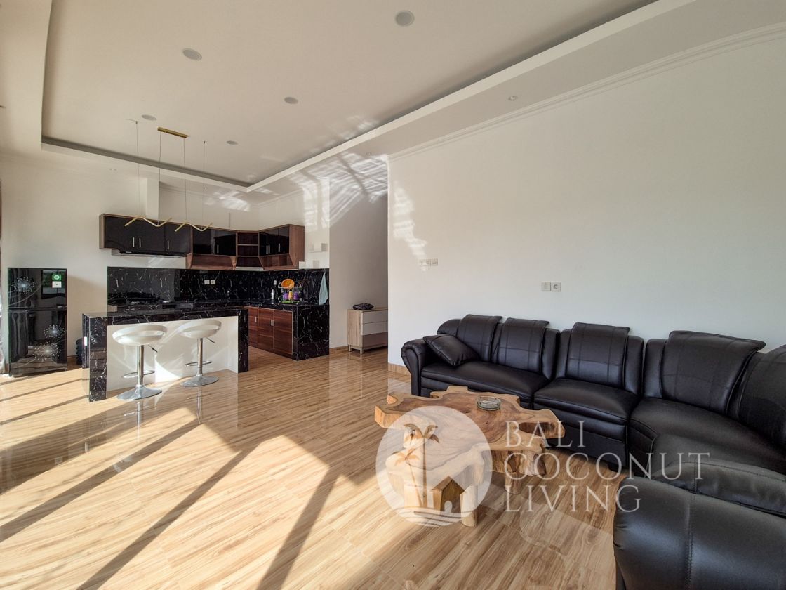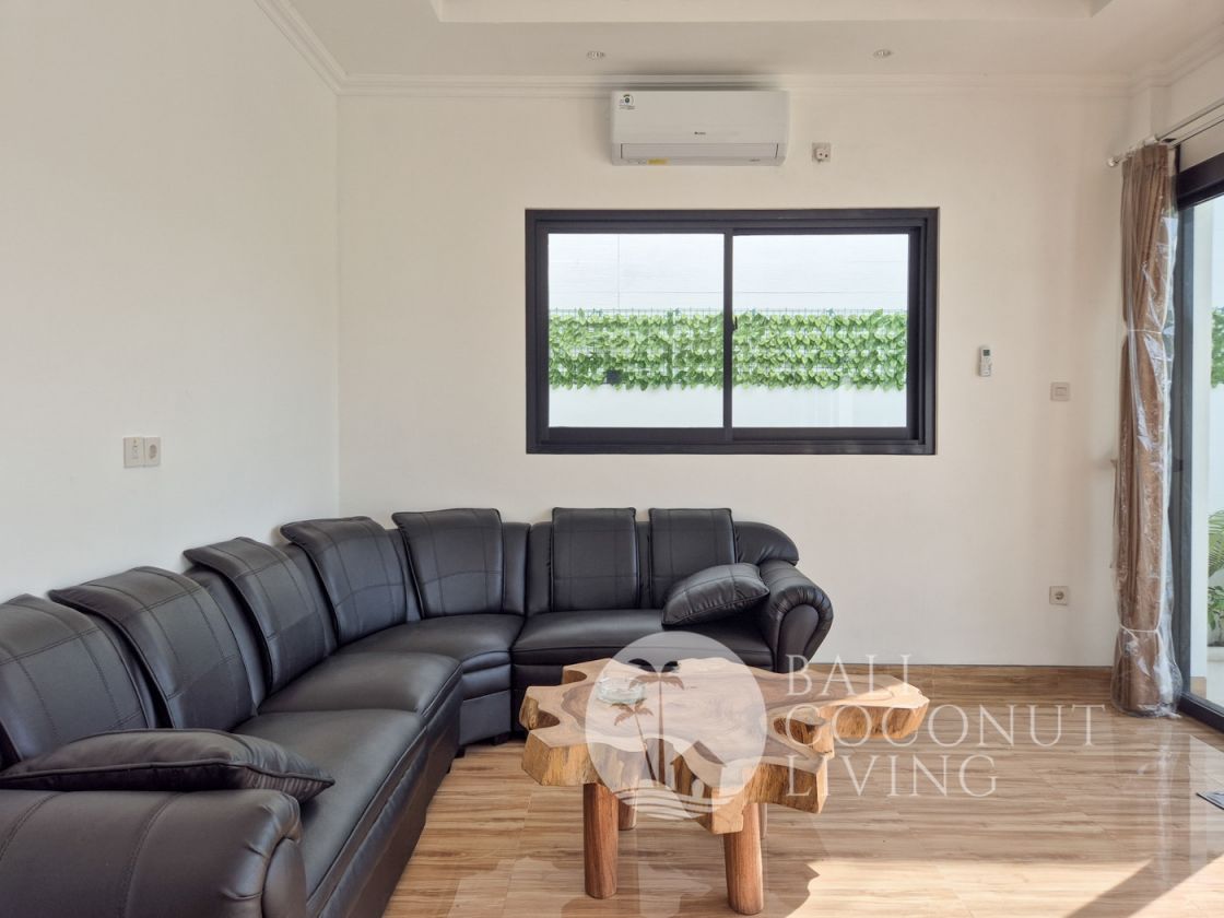 This charming 2-bedroom villa in Seminyak offers a perfect blend of comfort and tropical living, set on 200 sqm of land. Designed with an open living concept, the space flows seamlessly from the cozy indoor lounge to the inviting outdoor area, allowing natural light and fresh air to fill the home. The interiors feature a warm mix of modern simplicity and traditional wooden accents, creating a rela