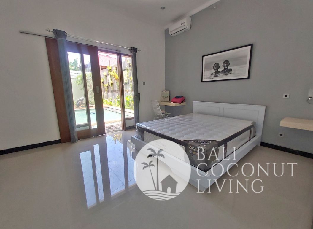 Brand new 2 bedroom villa situated in a quiet area of Pererenan is now available for yearly rental. The villa set on 200 sqm of land size. The villa features 2 en-suite bedrooms, kitchen, closed living, pool and parking space.