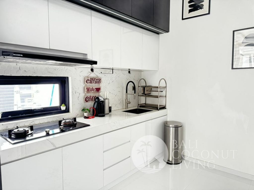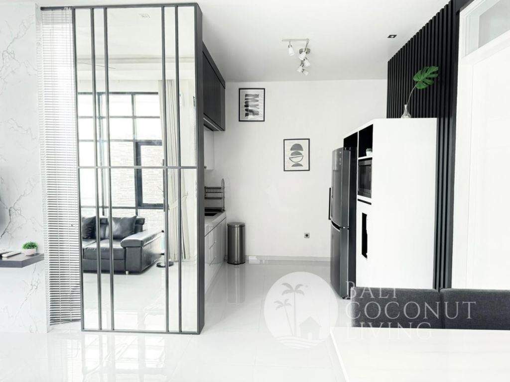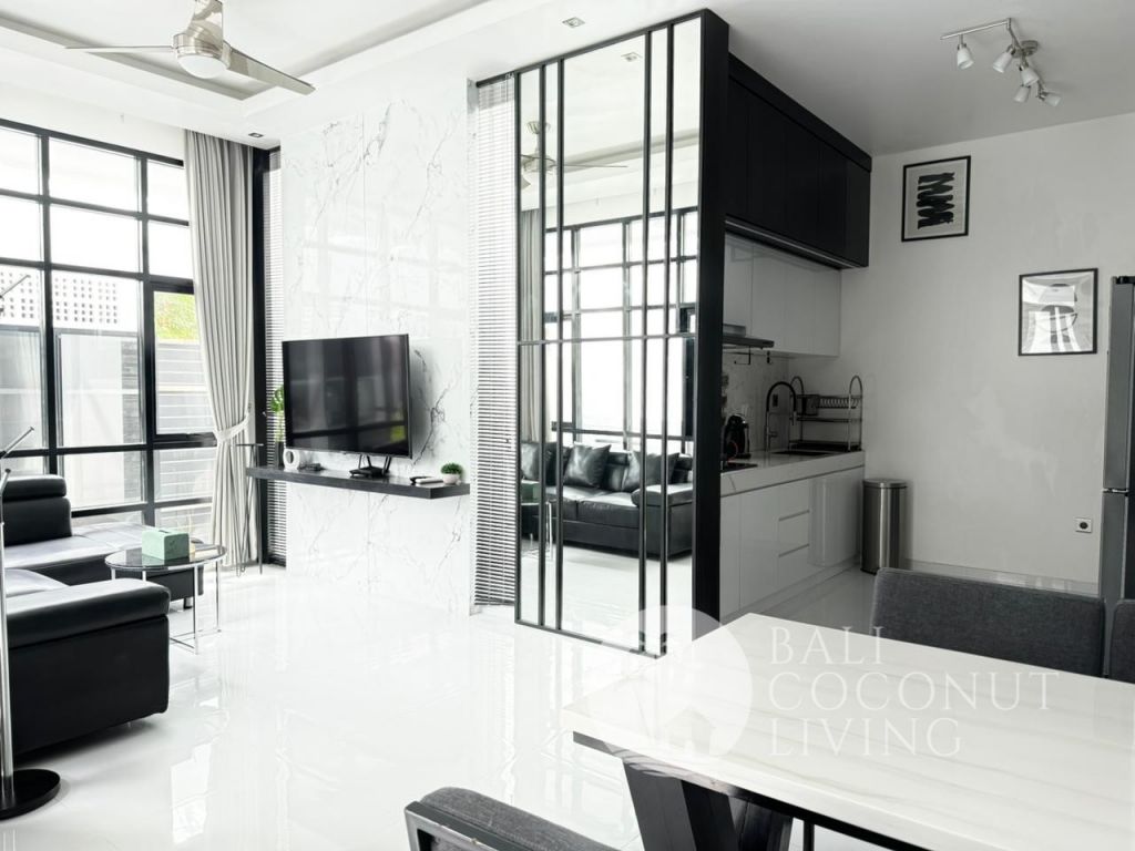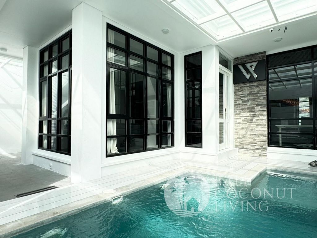 This elegant modern villa offers the perfect balance between tropical vibes and contemporary comfort. Designed with a closed living area, it ensures privacy and comfort while keeping the space bright and airy through wide glass doors overlooking the pool. Featuring 3 spacious bedrooms with ensuite bathrooms, a kitchen with warm wooden finishes, and a stylish living room that creates a cozy and