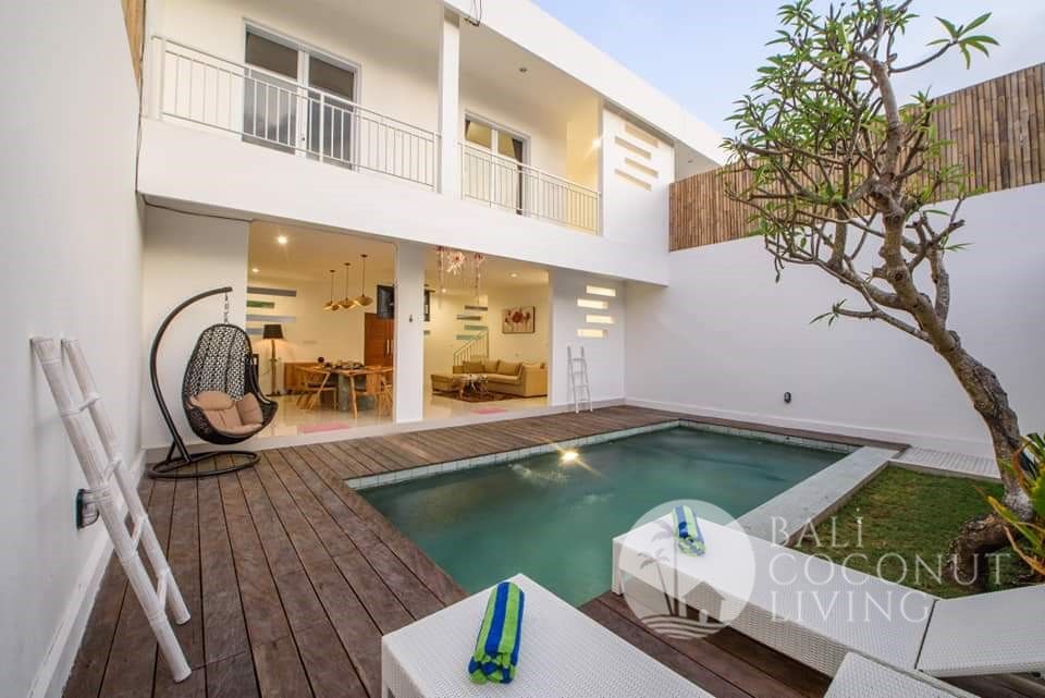 This elegant modern villa offers the perfect balance between tropical vibes and contemporary comfort. Designed with a closed living area, it ensures privacy and comfort while keeping the space bright and airy through wide glass doors overlooking the pool. Featuring 3 spacious bedrooms with ensuite bathrooms, a kitchen with warm wooden finishes, and a stylish living room that creates a cozy and