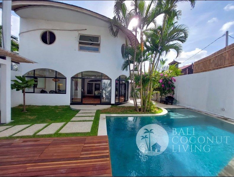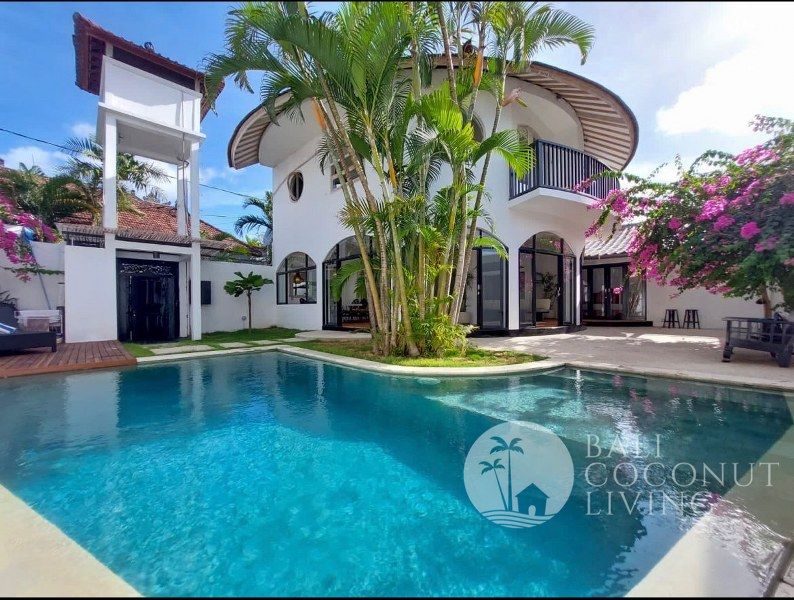 Set proud within the highly sought after Seminyak district, this luxurious grand family home is one for the renter or astute buyer. Sitting on a generous 330 sqm allotment. Architecturally designed and boasting 5 bedrooms with 4 baths, equipped kitchen, enclosed living and dining space, balcony, swimming pool, garden, and parking space. This stylish contemporary home has been meticulously built to the highest modern standards.
