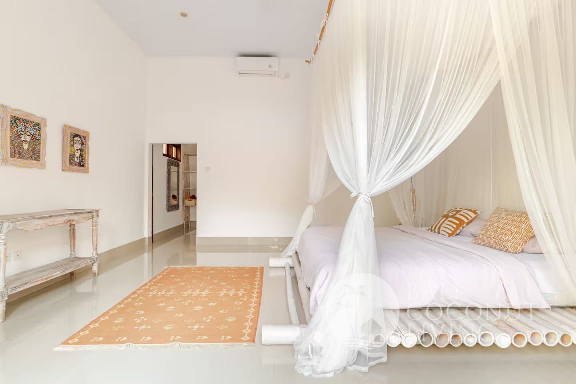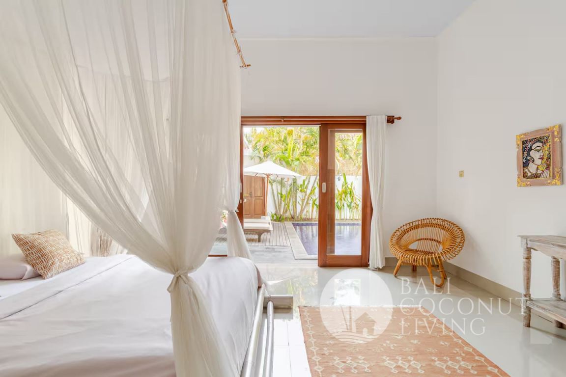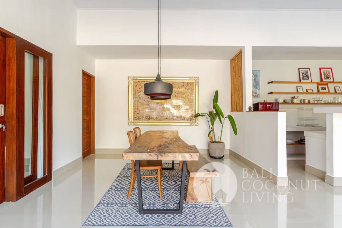 This charming 2-bedroom villa in Seminyak offers a perfect blend of comfort and tropical living, set on 200 sqm of land. Designed with an open living concept, the space flows seamlessly from the cozy indoor lounge to the inviting outdoor area, allowing natural light and fresh air to fill the home. The interiors feature a warm mix of modern simplicity and traditional wooden accents, creating a relaxed yet stylish atmosphere ideal for everyday living.
