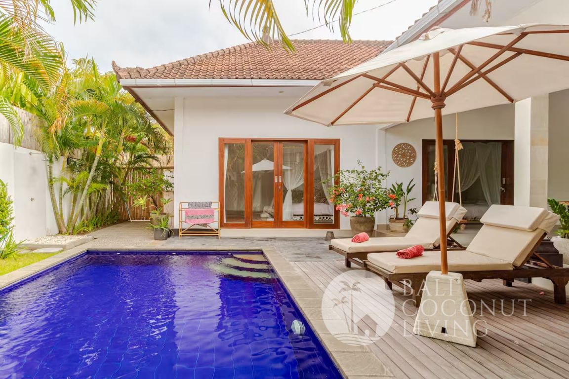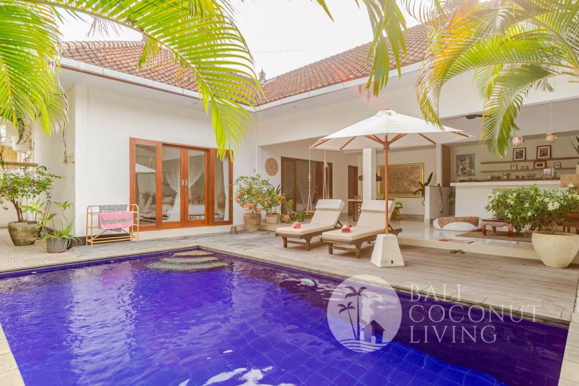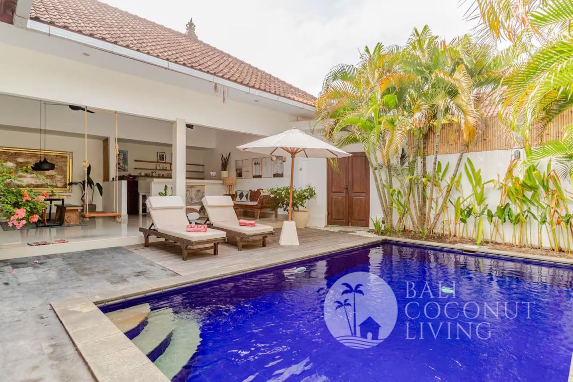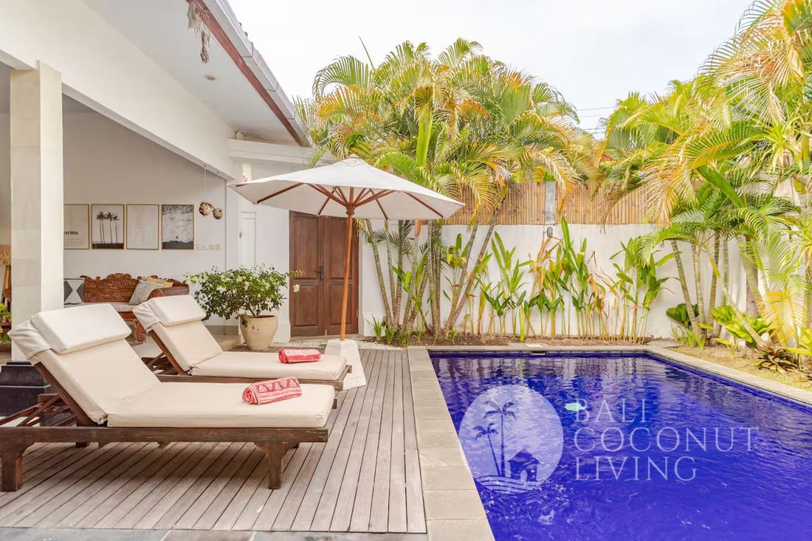 Step outside to your private pool area, complete with sun loungers and lush greenery that enhances the sense of privacy and tranquility. Each bedroom comes with its own bathroom, providing comfort and convenience for residents or guests. Located in the heart of Seminyak, this villa is a great option for monthly and yearly rental, offering both a peaceful retreat and easy access to popular cafes, restaurants, and beaches.