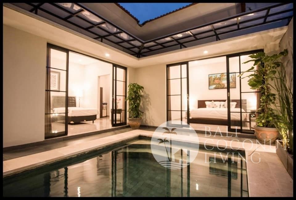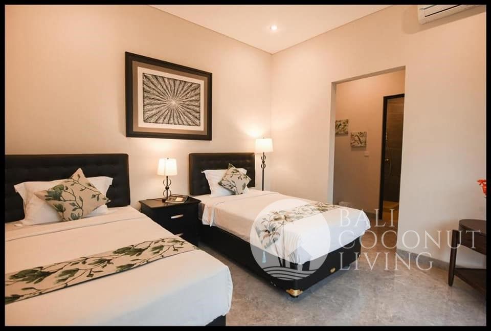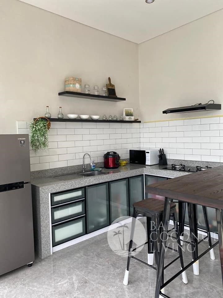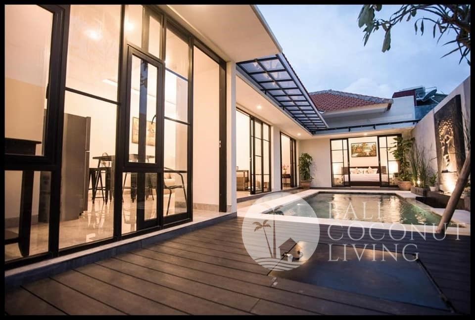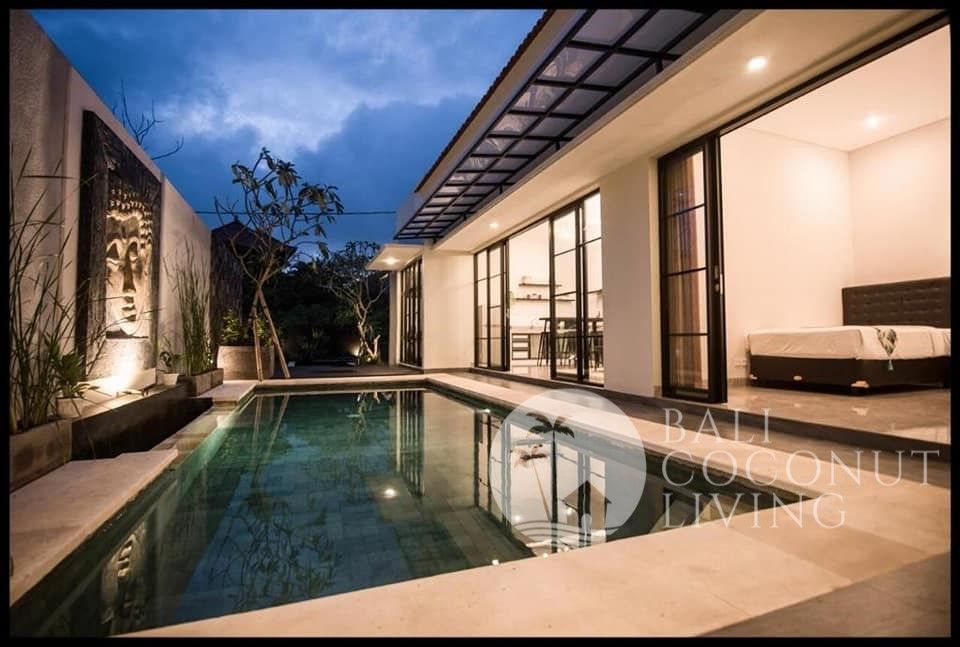 This elegant modern villa offers the perfect balance between tropical vibes and contemporary comfort. Designed with a closed living area, it ensures privacy and comfort while keeping the space bright and airy through wide glass doors overlooking the pool. Featuring 3 spacious bedrooms with ensuite bathrooms, a kitchen with warm wooden finishes, and a stylish living room that creates a cozy and