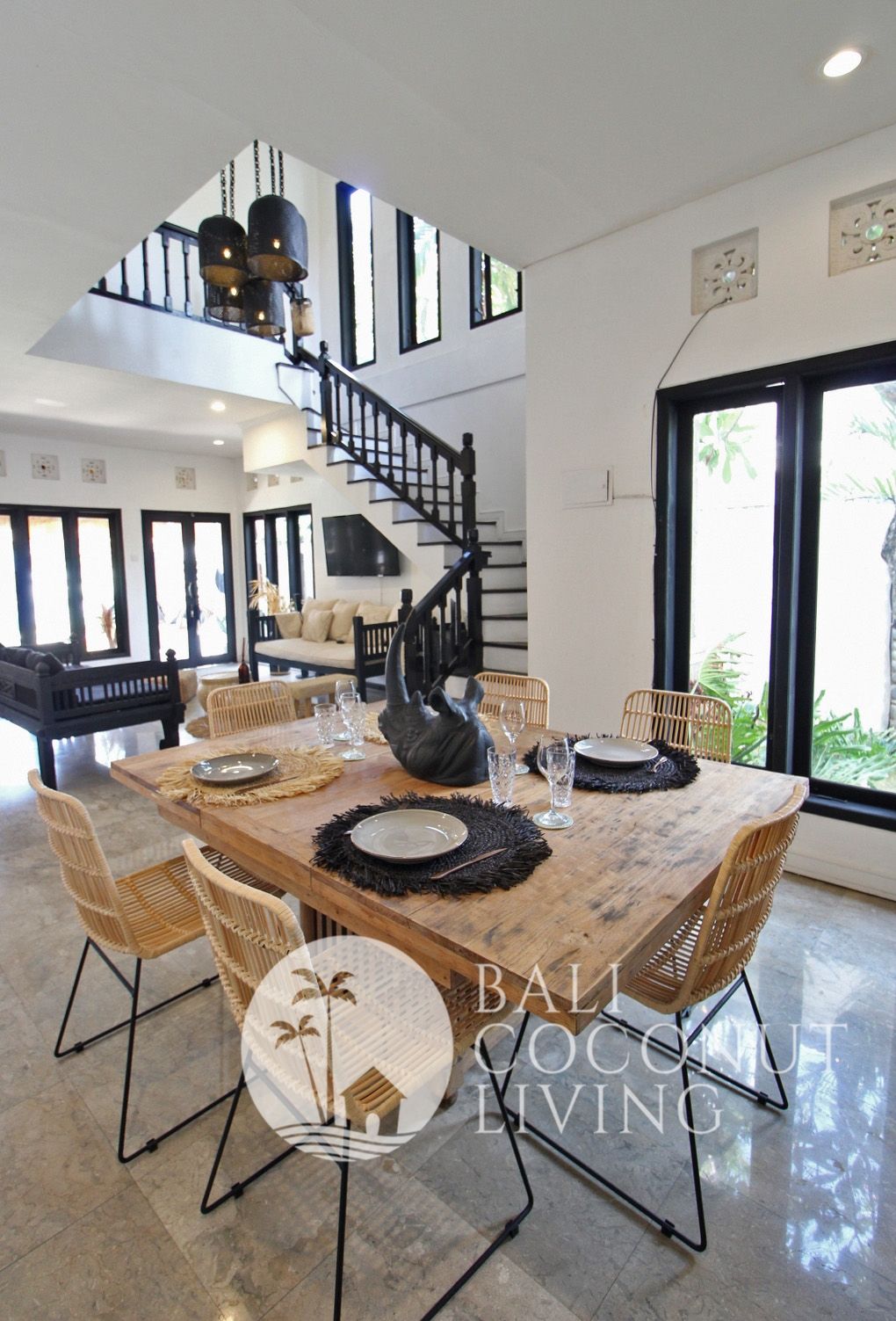 Step into the comfort, a stylish modern home that blends clean design with a warm tropical ambiance. This elegant 3-bedroom villa is thoughtfully designed to offer both functionality and tranquility, ideal for a comfortable long-term stay in Bali. The villa features a bright enclosed living area, a fully equipped kitchen, and a seamless connection to the private swimming pool surrounded by lus