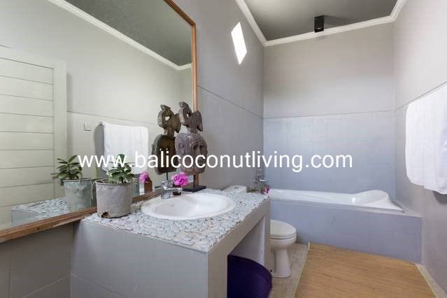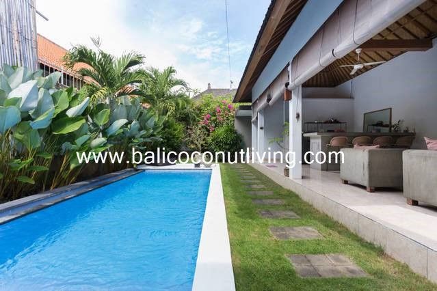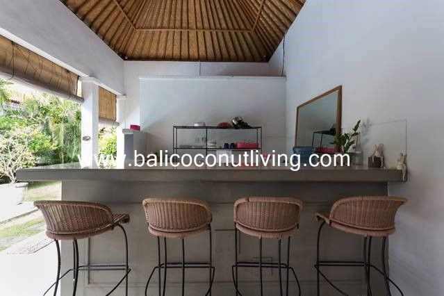 With a neat and charming design can provide a comfortable home feel for anyone who lives in it. With well-manicured lawn and nice tropical vegetation make this villa look nice. The benefits you can get from renting this villa is the location is very accessible and only need short drives to the famous Seminyak and to Berawa (via shortcut way on Bumbak). This charming villa is available for yearly rentals.